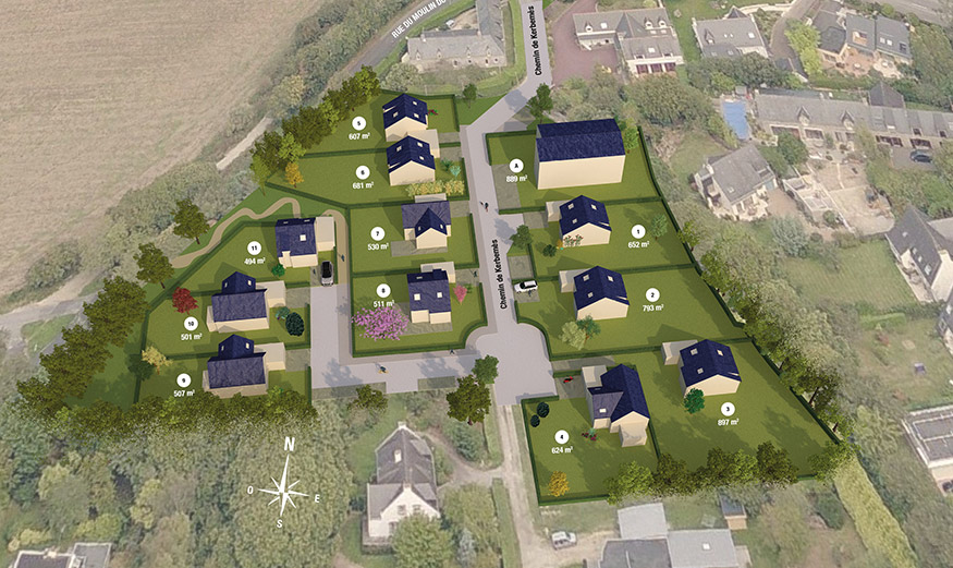 Les premières maisons vont bientôt sortir de terre sur le programme « Le Clos du Moulin du Ter » à Ploemeur (56), porté par Crédit Mutuel Aménagement Foncier.