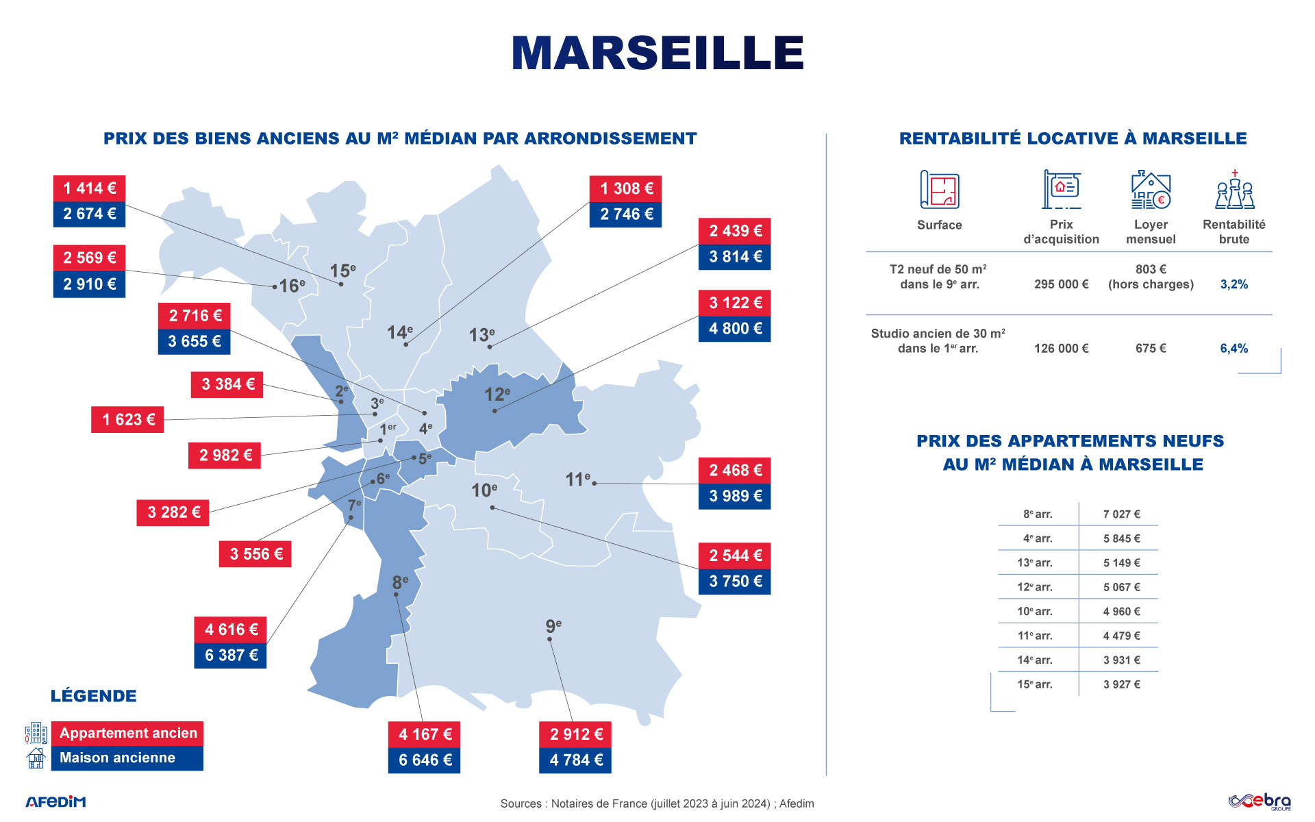 Selon les Notaires de France, le prix médian au mètre carré atteint 3 027 € pour un appartement ancien, 5 413 € pour un appartement neuf et 3 960 € pour une maison ancienne. « Le marché marseillais est tendu, il y a un vrai déséquilibre entre l’offre et la demande », explique Fabienne Feral, responsable secteur Sud chez Afedim. Elle souligne également « une grande diversité des prix selon les secteurs, avec des adresses très valorisées comme l’avenue du Prado ou Borély, et d’autres beaucoup plus accessibles ». Si Marseille reste bien en deçà des niveaux de prix de la plupart des grandes métropoles françaises, la cité phocéenne se distingue justement par son potentiel de progression, en valeur, dans les années à venir.