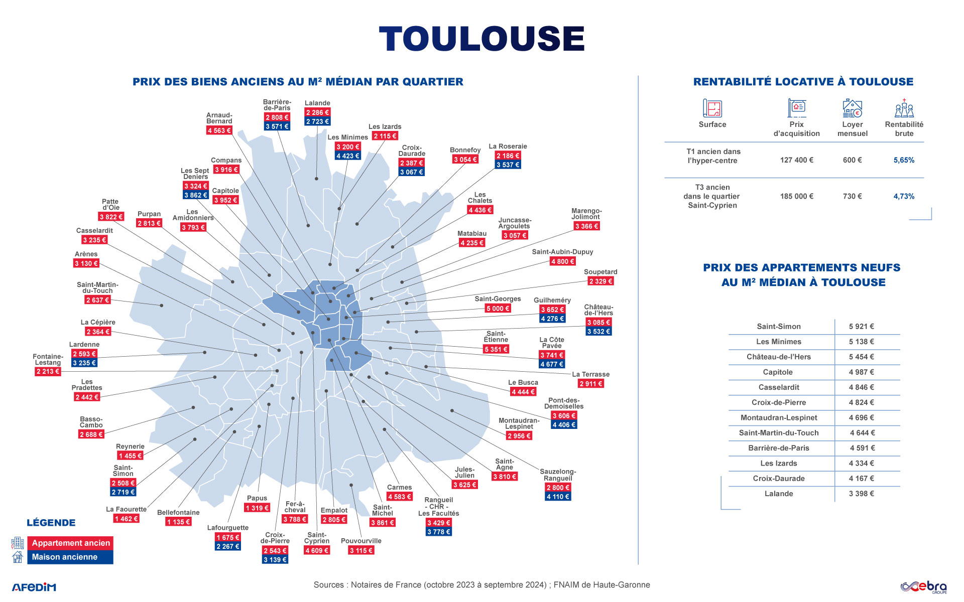- 14,1 €/m2/mois : Montant médian du loyer dans la zone la + chère de Toulouse (hors charges) (16)