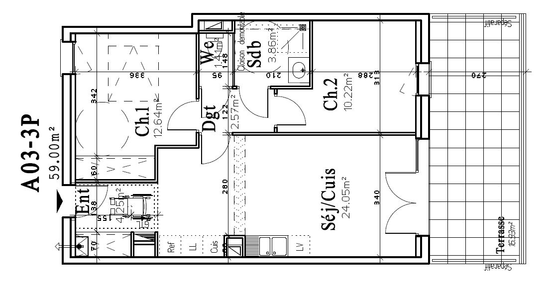 • Surface habitable : 59 m²