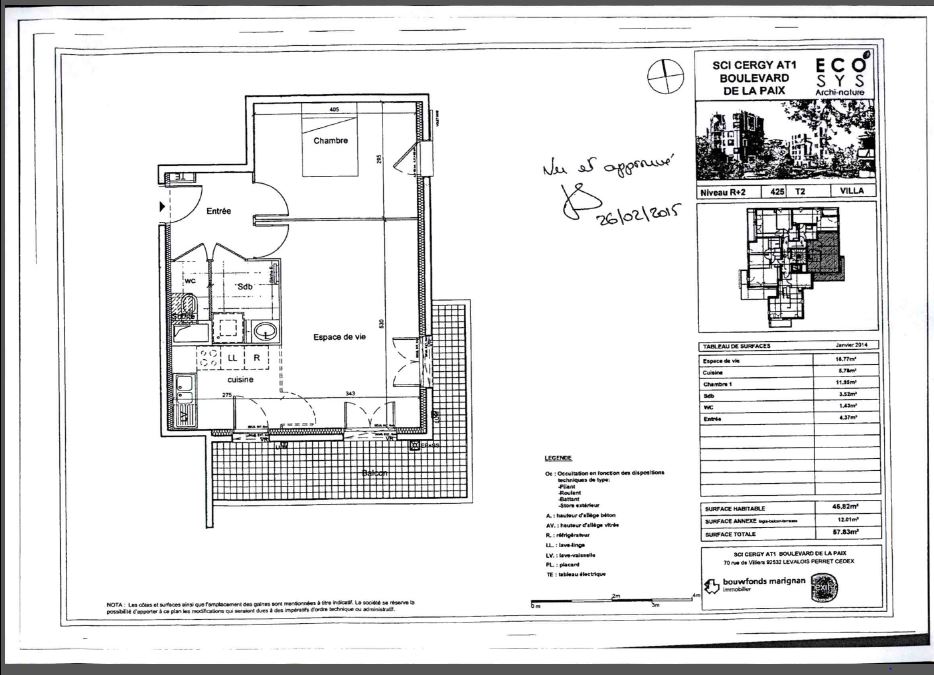 A CERGY, résidence "LA RUCHE", bénéficiant de toutes les commodités, d'une situation idéale et d'une qualité de vie remarquable, T2 n°425 (lot 113) de 45.82m² situé au 2ème étage avec ascenseur. Il se compose d'une entrée, d'une pièce à vivre avec cuisine équipée (plaque vitrocéramique, meuble sous évier) sur balcon de 12.01m² exposé sud-est, d'une chambre, d'une salle de bain et d'un WC. Au premier sous sol, un parking n°1051 (lot 309). Chauffage urbain (collectif). Eau collective. Les honoraires de location TTC (à la charge du locataire) incluent le montant de rédaction des états des lieux facturé pour 138 euros TTC, après réalisation lors de l'entrée dans les lieux. Pour plus de détails sur ce logement, vous pouvez consulter la fiche descriptive de ce bien, sur votre site internet AFEDIM.