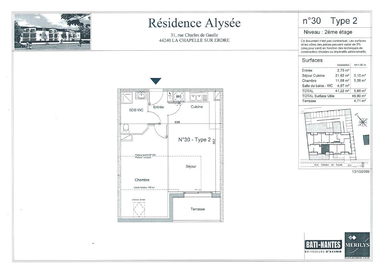 LA CHAPELLE SUR ERDRE, vous est proposée dans la résidence Alysée un appartement T2 de 41,22m² avec terrasse de 4 m², situé au 2ème étage avec ascenseur du Bâtiment A, composé d'une entrée, un séjour / cuisine, une chambre , une salle d'eau avec WC. Au rez-de-chaussée, un parking extérieur n°P10 (lot 38). Eau chaude et chauffage (individuel). Entretien parties communes, entretien ascenseur et espaces verts communs, compris dans les provisions sur charges mensuelles et donnant lieu à une régularisation annuelle. Les honoraires de location TTC (à la charge du locataire) incluent le montant de rédaction des états des lieux facturé pour 124euros TTC, après réalisation lors de l'entrée dans les lieux. Disponible le 19/02/2026. Pour plus de détails sur ce logement, vous pouvez consulter la fiche descriptive de ce bien, sur votre site internet AFEDIM.