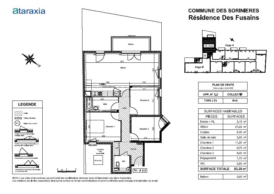 Dans la Résidence Les Fusains, appartement T4 N° A22 (lot 13) situé au 2ème étage avec ascenseur, d'environ 83 m² avec balcon d'environ 5 m², comprenant : entrée avec placard, séjour, avec cuisine donnant sur un balcon de 5.6m², trois chambres, salle de bains et wc séparé , dégagement. Au sous-sol, un emplacement de parking n°3 (lot 45) et un box n° 14 (lot 53). Eau chaude et chauffage (individuel). Entretien parties communes, entretien ascenseur et espaces verts communs, compris dans les provisions sur charges mensuelles et donnant lieu à une régularisation annuelle. Le montant des honoraires de location (visite, constitution dossier, bail) pour 833 euros TTC et le montant des honoraires de rédaction des état des lieux pour 249 euros TTC. Pour plus de détails sur ce logement, vous pouvez consulter la fiche descriptive de ce bien, sur votre site internet AFEDIM.