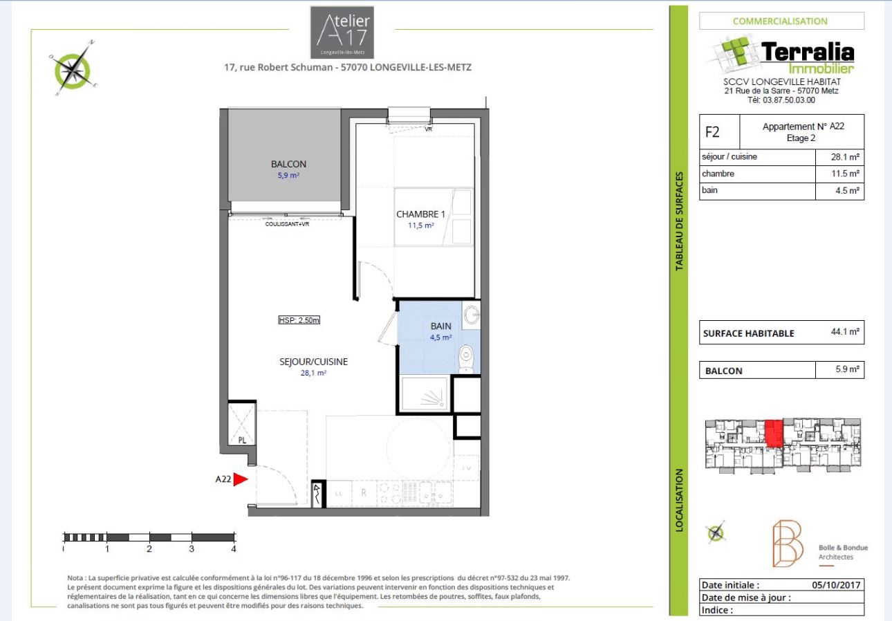 • Surface habitable : 44,1 m²