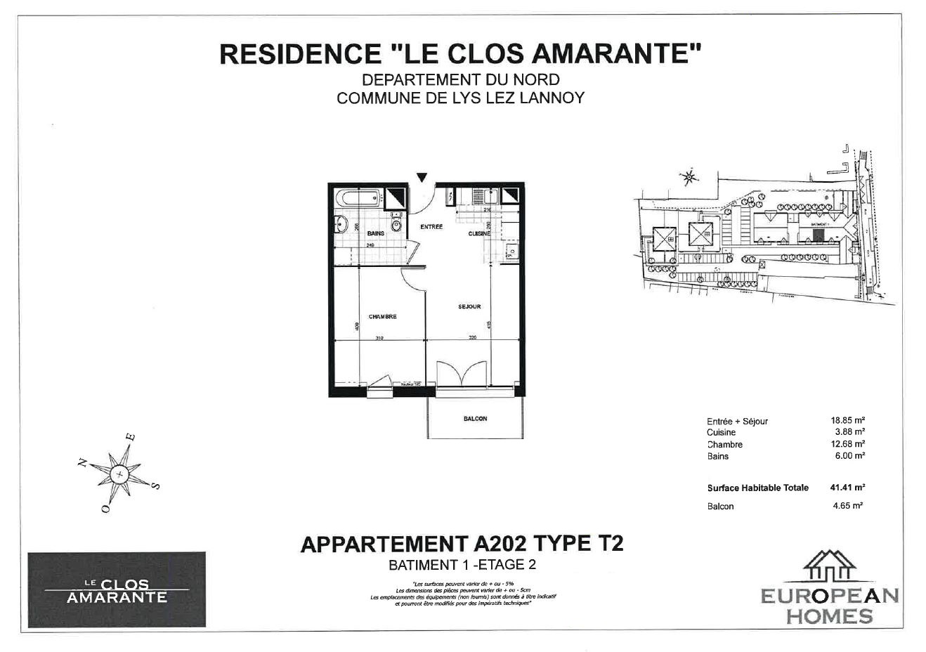 Bénéficiant d'un emplacement privilégié, Lys-Lez-Lannoy allie les attraits de la campagne aux besoins de la ville et vous offre un cadre de vie agréable avec de nombreux services de proximité. Dans la résidence LE CLOS AMARANTE vous est proposé un appartement (n°A202) dans le bâtiment A de type 2 de 41.41 m² au 2ème étage. Il comprend : une entrée, une cuisine ouverte sur séjour, donnant sur un balcon de 4.65 m², une chambre de 12.68 m², une salle de bains avec wc. 2 places de parking au rez-de-chaussée (n31 + n51). Chauffage et production d'eau chaude par chaudière individuelle gaz à condensation. Eau froide, entretien parties communes, entretien ascenseur et espaces verts communs, compris dans les provisions sur charges mensuelles et donnant lieu à une régularisation annuelle. Les honoraires de location, (à la charge du locataire) incluent le montant de rédaction du bail et des états des lieux facturé pour 125 euros TTC, après réalisation lors de l'entrée dans les lieux. Plus de détails sur notre site AFEDIM.