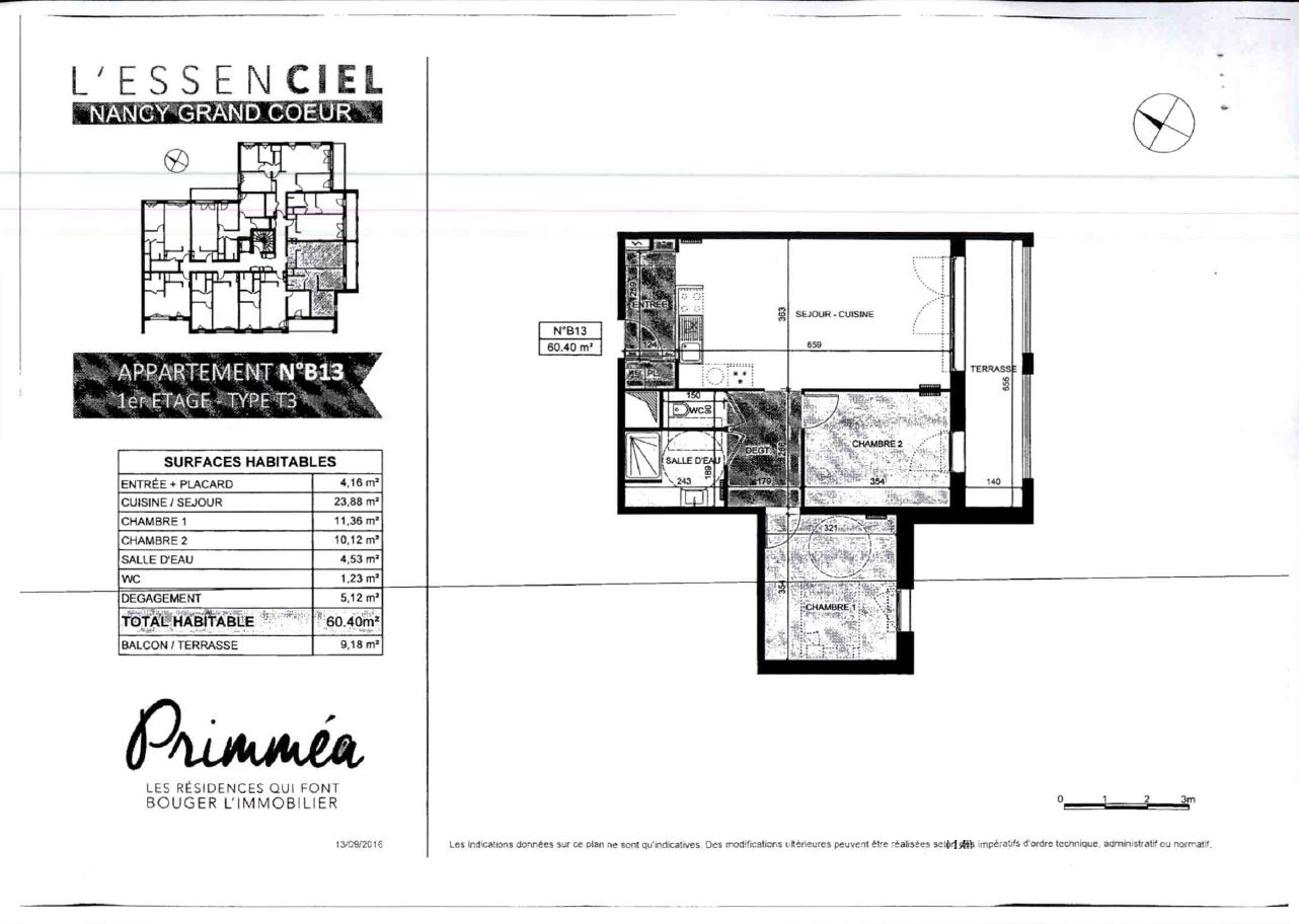 NANCY - Au cour de l'éco-quartier de Nancy Grand Cour, dans la résidence ESENCIEL à quelques pas du centre commerçant, nous vous proposons un appartement T3 n°B13, au 1er étage du bâtiment B (avec ascenseur). Il se compose d'une entrée avec placard, d'un séjour avec cuisine ouverte de 23m² donnant sur un balcon de 9m², de deux chambres dont une donnant sur la balcon et d'une salle d'eau avec WC séparé. Une place de parking n°54 est également à disposition. Chauffage et eau chaude (urbain) individuels. Entretien des parties communes compris dans les provisions sur charges mensuelles et donnant lieu à une régularisation annuelle. Les honoraires de location TTC (à la charge du locataire) incluent le montant de rédaction des états des lieux facturé pour 212 euros TTC, après réalisation lors de l'entrée dans les lieux. Pour plus de détails sur ce logement, vous pouvez consulter la fiche descriptive de ce bien, sur notre site internet Afedim.
