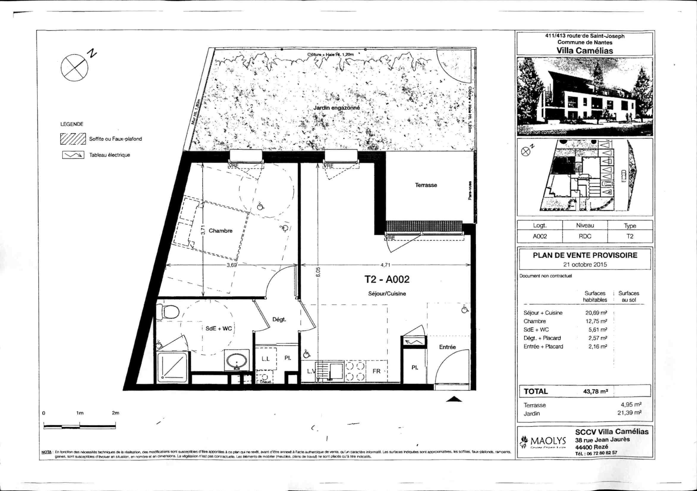 • Surface habitable : 43,78 m²
