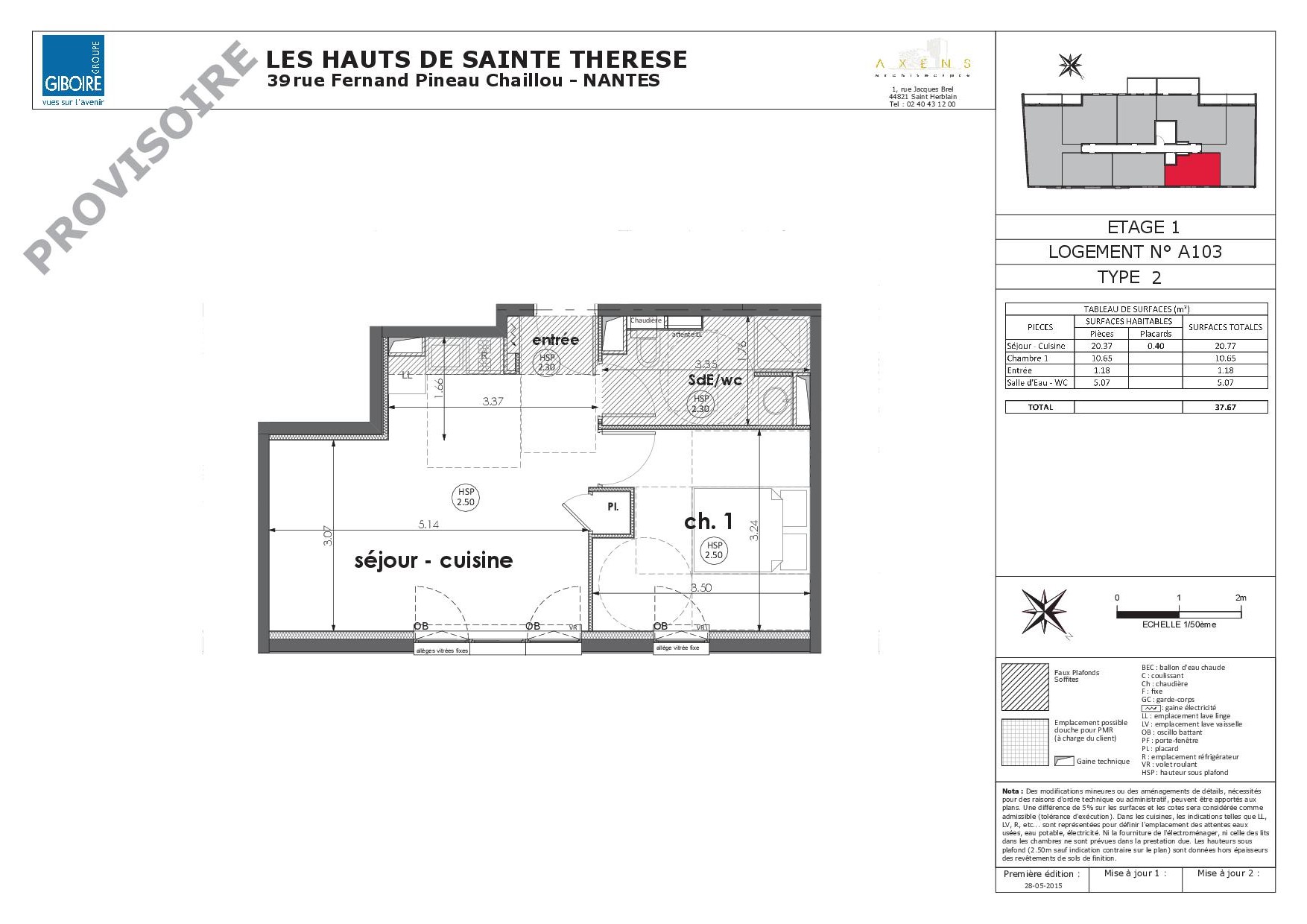 A 12 minutes du coeur de Nantes en tramway, dans la résidence BBC LES HAUTS DE SAINTE THERESE, nous vous proposons un T2 n°A103 de 37.67m² situé au 1er étage avec ascenseur de la résidence. Il se compose d'une pièce de vie sur parquet avec cuisine aménagée et équipée (plaques, hotte et réfrigérateur), d'une chambre et d'une salle d'eau avec WC. En annexe, un stationnement extérieur privatif n°17. Eau froide, entretien parties communes, entretien ascenseur et espaces verts communs, compris dans les provisions sur charges mensuelles et donnant lieu à une régularisation annuelle. Les honoraires de location 489TTC (à la charge du locataire) incluent le montant de rédaction des états des lieux facturé pour 113 euros TTC, après réalisation lors de l'entrée dans les lieux. Pour plus de détails sur ce logement, vous pouvez consulter la fiche descriptive de ce bien, sur notre site internet AFEDIM GESTION