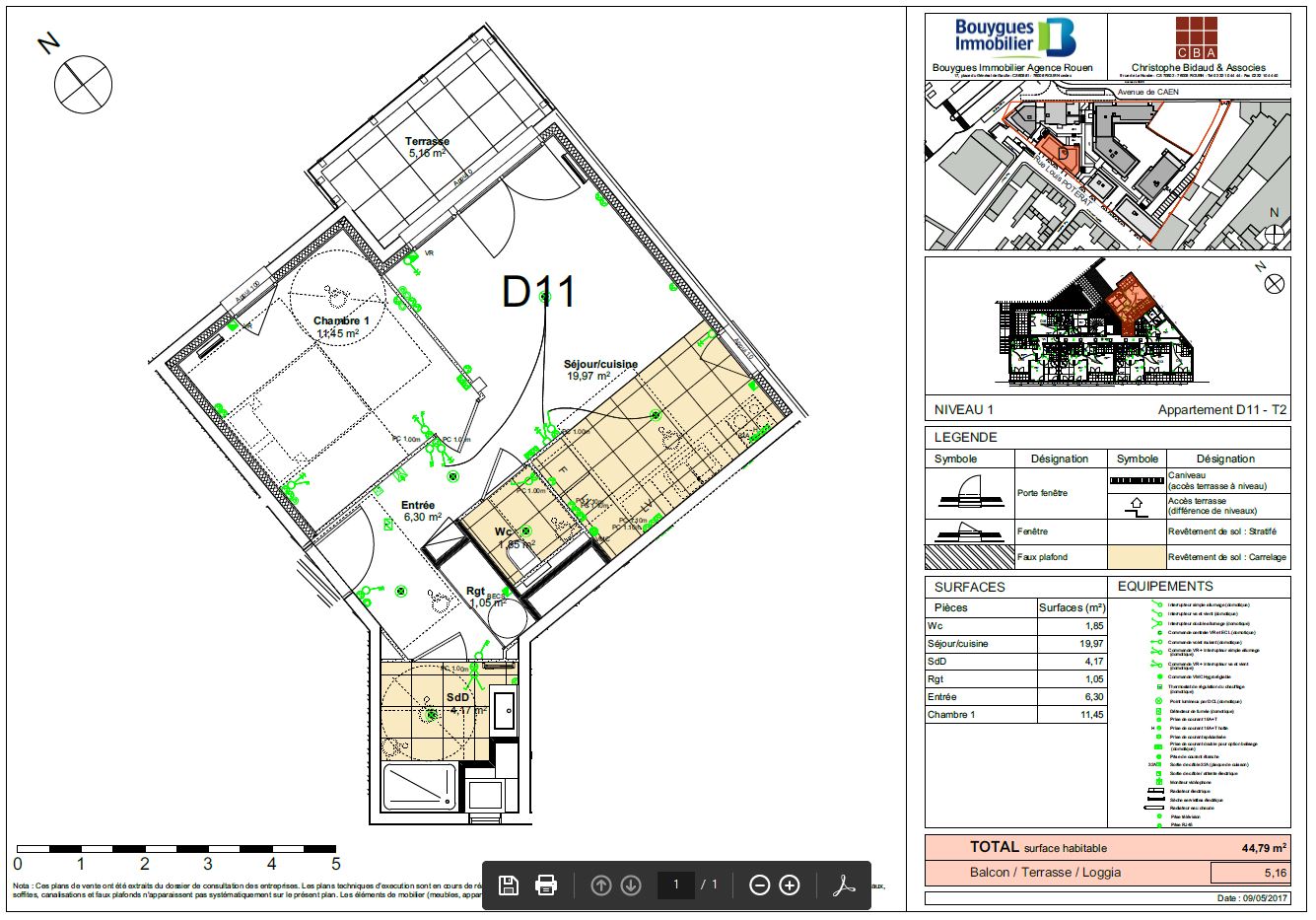• Surface habitable : 44,79 m²