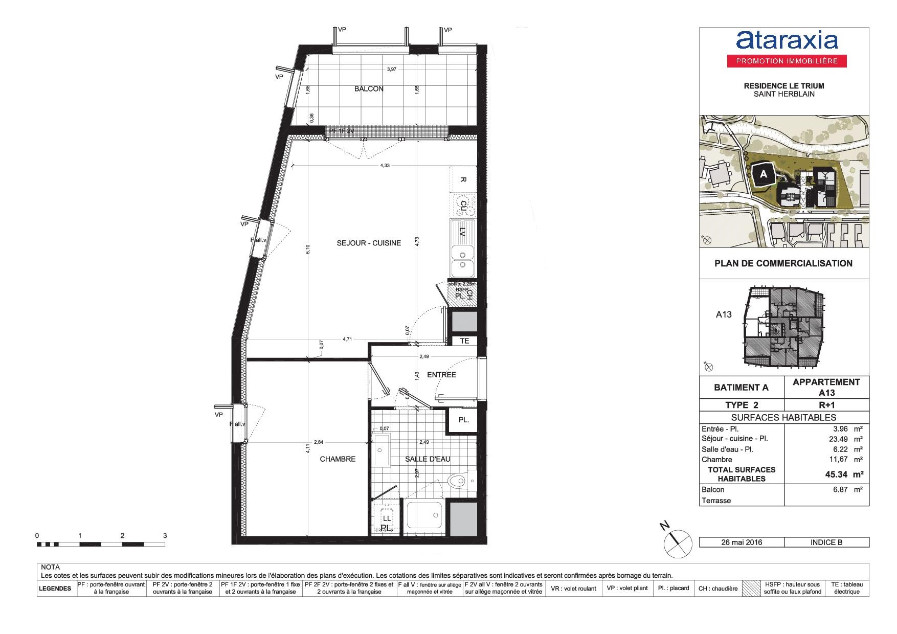 • Surface habitable : 45,34 m²