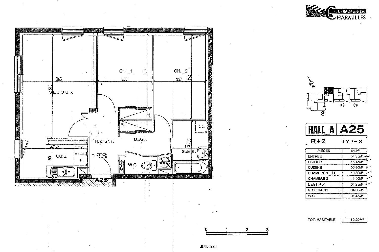 • Surface habitable : 60,9 m²