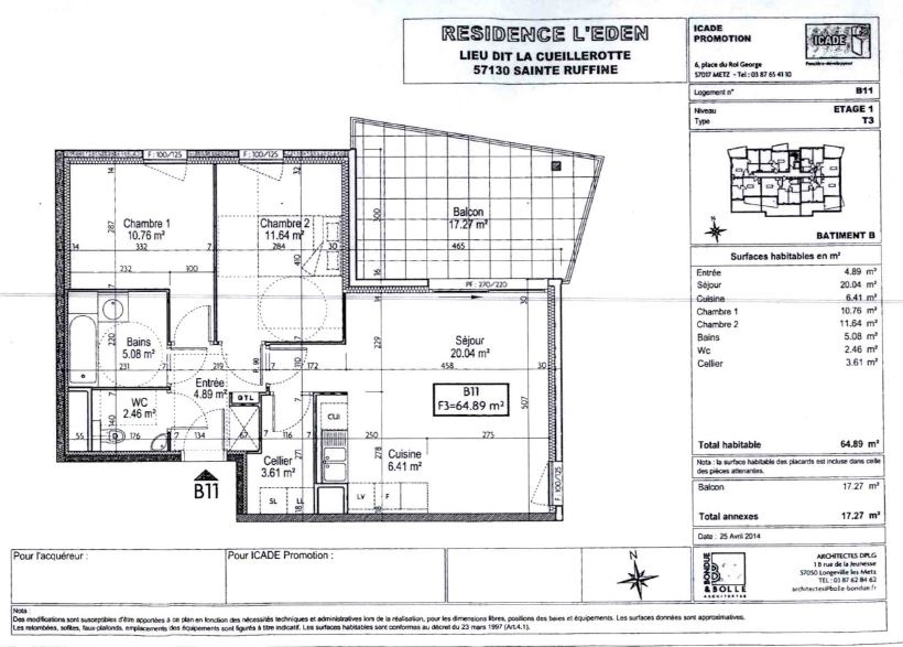 Surface habitable : 64,89 m²