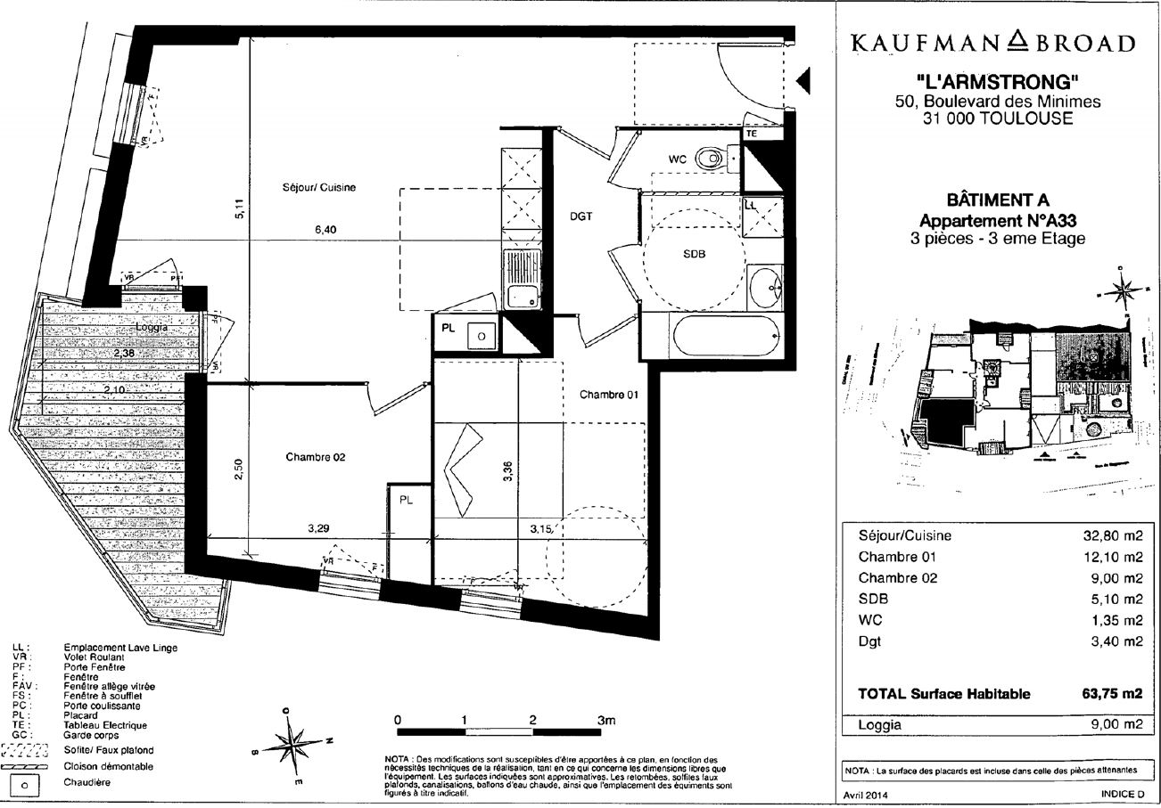 Surface habitable : 63,75 m²