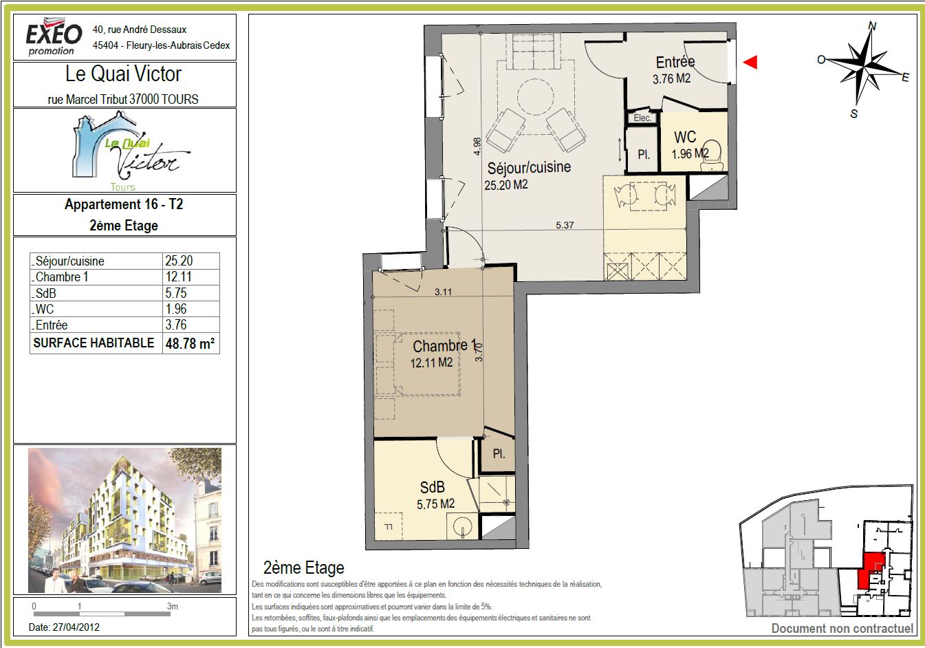 Location Appartement 2 pièces de 50m² à 637 EUR/mois à TOURS