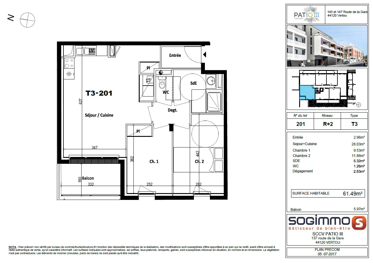 • Surface habitable : 61,49 m²