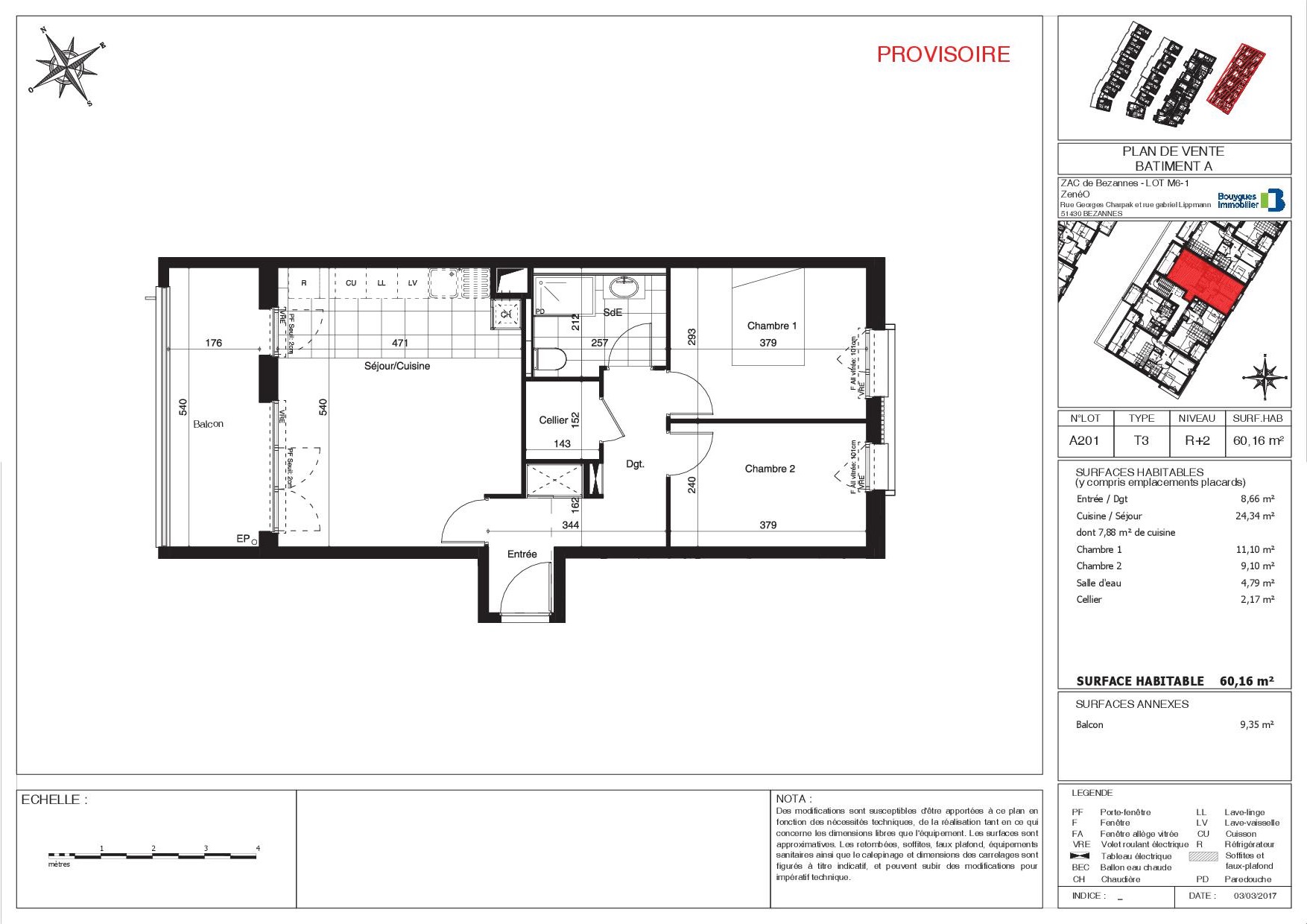 • Surface habitable : 60,16 m²