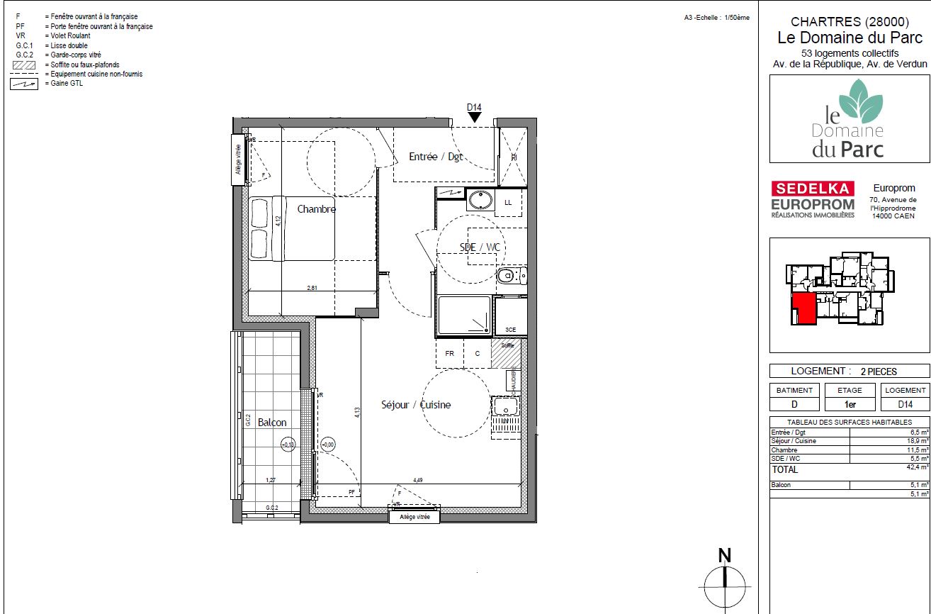 A Chartres, quartier de Rechèvres, proche de la gare, du Parc André Gagnon et à seulement quelques minutes à pieds du centre ville, dans la résidence labelisée BBC "Le Domaine du Parc", nous vous proposons un T2 de 42.40 m² n°D14 situé au 2ème étage avec ascenseur du bâtiment D. Il se compose d'une entrée avec placard, d'une pièce de vie avec cuisine ouverte sur balcon de 5.10m², d'une chambre, et d'une salle d'eau avec WC. Eau chaude et chauffage individuel a gaz. Entretien parties communes, entretien ascenseur et espaces verts communs, compris dans les provisions sur charges mensuelles et donnant lieu à une régularisation annuelle. Les honoraires de location TTC (à la charge du locataire) incluent le montant de rédaction des états des lieux facturé pour 127 euros TTC, après réalisation lors de l'entrée dans les lieux. Disponible le 22/01/2026. Pour plus de détails sur ce logement, vous pouvez consulter la fiche descriptive de ce bien, sur votre site internet AFEDIM