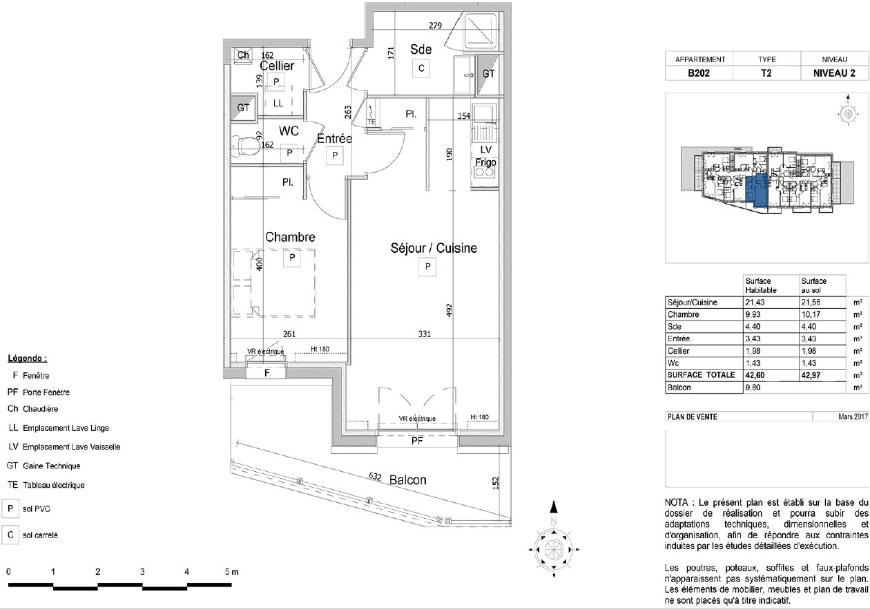 COUËRON, à 200m de la gare, un appartement T2 (n°B202) de 42,60 m² situé au 2ème étage du bâtiment B de la résidence VALLON D'YS. Il se compose d'un séjour-cuisine de 21,43 m² avec cuisine aménagée donnant sur un balcon de 9,80 m² orienté sud, d'un cellier, d'une salle d'eau, de WC et d'une chambre de 9,93 m². Un parking extérieur P046 complète le bien. Eau chaude et chauffage individuels au gaz. Eau froide, entretien chaudière, entretien parties communes et espaces verts communs, compris dans les provisions sur charges mensuelles et donnant lieu à une régularisation annuelle. Les honoraires de location, (à la charge du locataire) incluent le montant de rédaction du bail et des états des lieux facturé pour 129.00 euros TTC, après réalisation lors de l'entrée dans les lieux. Disponible au 26/04/2026. Pour plus de détails sur ce logement, vous pouvez consulter la fiche descriptive de ce bien, sur notre site internet Afedim.