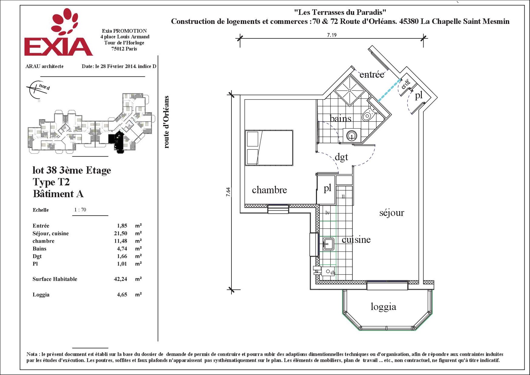 A La Chapelle Saint Mesmin, proche de toutes commodités dans la résidence "LES TERRASSES DU PARADIS" nous vous proposons un appartement de type T2 n° A 38 de 42,24 m², situé au 3ème étage du bâtiment avec ascenseur comprenant : une entrée, un séjour avec cuisine donnant sur un loggia de 4,65 m², une chambre et une salle d'eau avec WC. Au sous-sol un parking n° 7 et n°8. Chauffage et eau chaude individuel à gaz. Eau froide, espaces verts communs et entretien parties communes, compris dans les provisions sur charges mensuelles et donnant lieu à une régularisation annuelle. Les honoraires de location 421 euros TTC (à la charge du locataire) incluent le montant de rédaction des états des lieux facturé 126 euros TTC, après réalisation lors de l'entrée dans les lieux. Plus de détails sur notre site internet AFEDIM.
