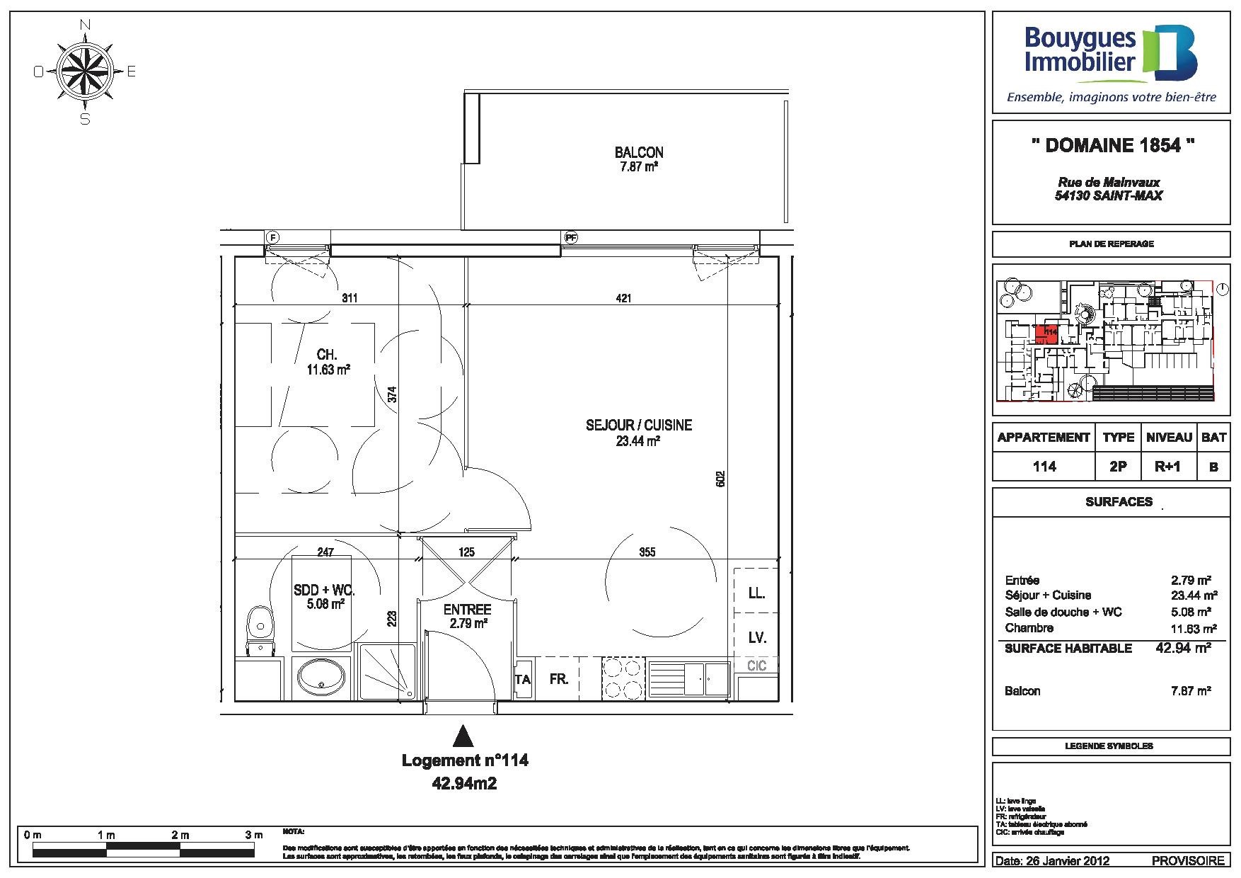 • Surface habitable : 42,94 m²