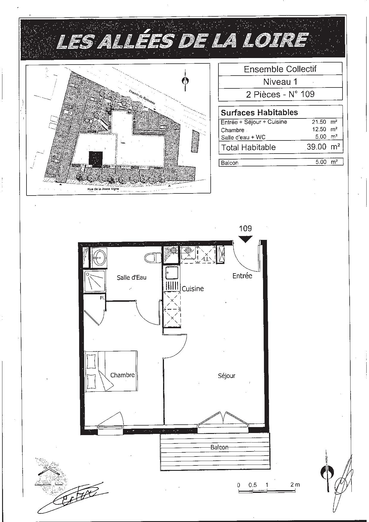 A Sainte Luce sur Loire, dans la résidence Les Allées de la Loire, appartement T2 n°109 (lot 21) de 39m², au 1er étage avec ascenseur, composé d'une entrée, un séjour, une cuisine aménagée et équipée(frigo, hotte, plaque), une chambre avec placard, salle d'eau avec WC. Un balcon de 5m². Chauffage individuel gaz. Un parking extérieur n°9 (lot 45). Les honoraires de location incluent le montant des honoraires de rédaction de l'état des lieux d'entrée (part locataire) facturés pour 118 euros TTC, après réalisation lors de l'entrée dans les lieux. Le montant des provisions sur charges mensuelles donne lieu à une régularisation annuelle. Pour plus de détails sur ce logement, vous pouvez consulter la fiche descriptive de ce bien, sur notre site internet AFEDIM.